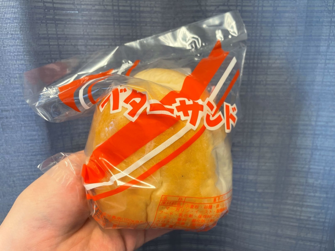 パンの種類は「バターサンド」「ハムサンド」といったパンの王道的なものが多いですが、それを包む包装が昔懐かしさを感じさせます。