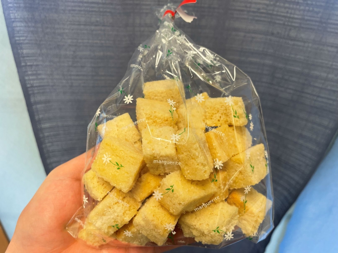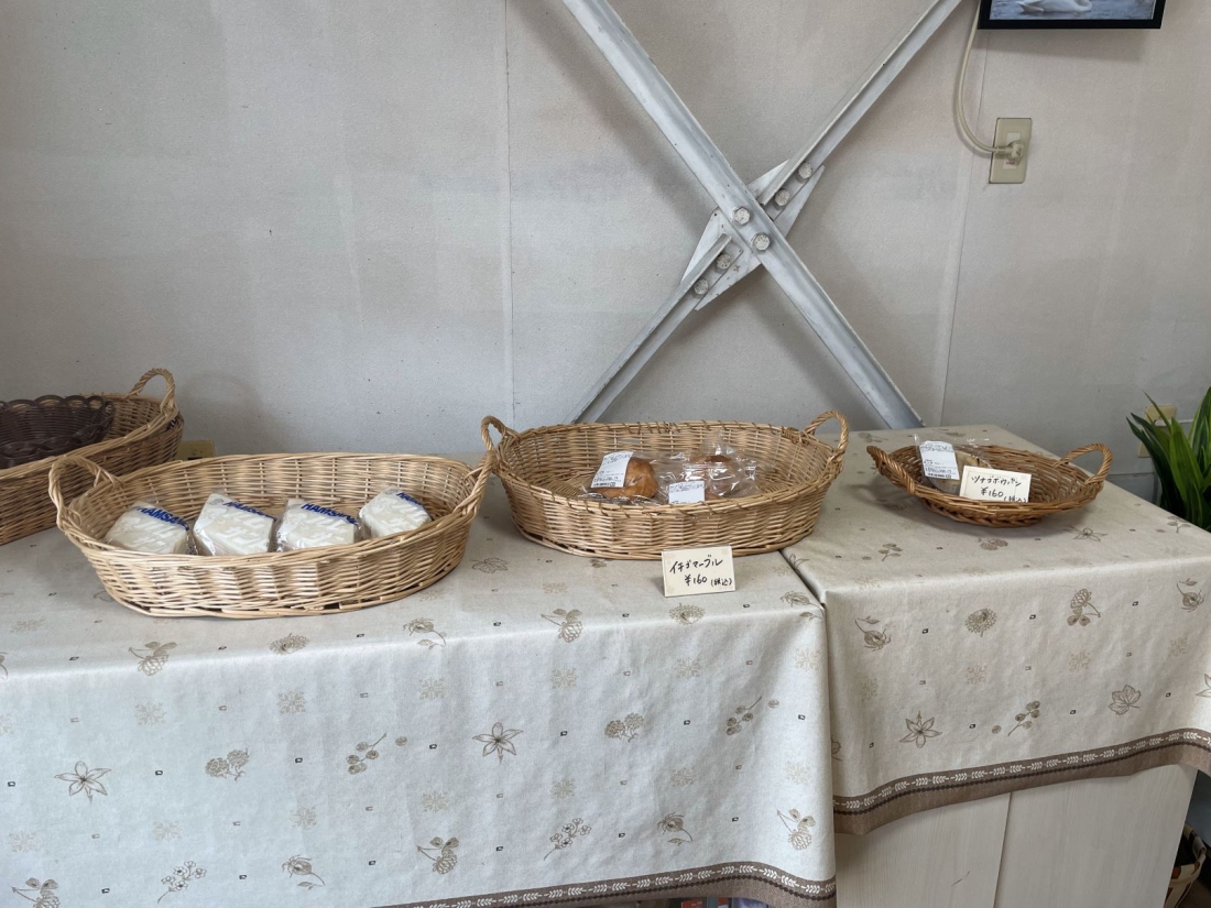 中に入ってみると棚とテーブルに袋詰めされたパンが置かれています。