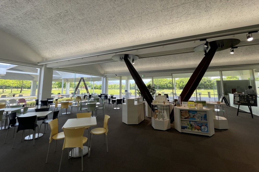 展示館の前の芝生は自由に遊べるスペースになっています。土日になるとレジャーシートを持ってきて、家族でピクニックをしている方もいらっしゃるそうです。
