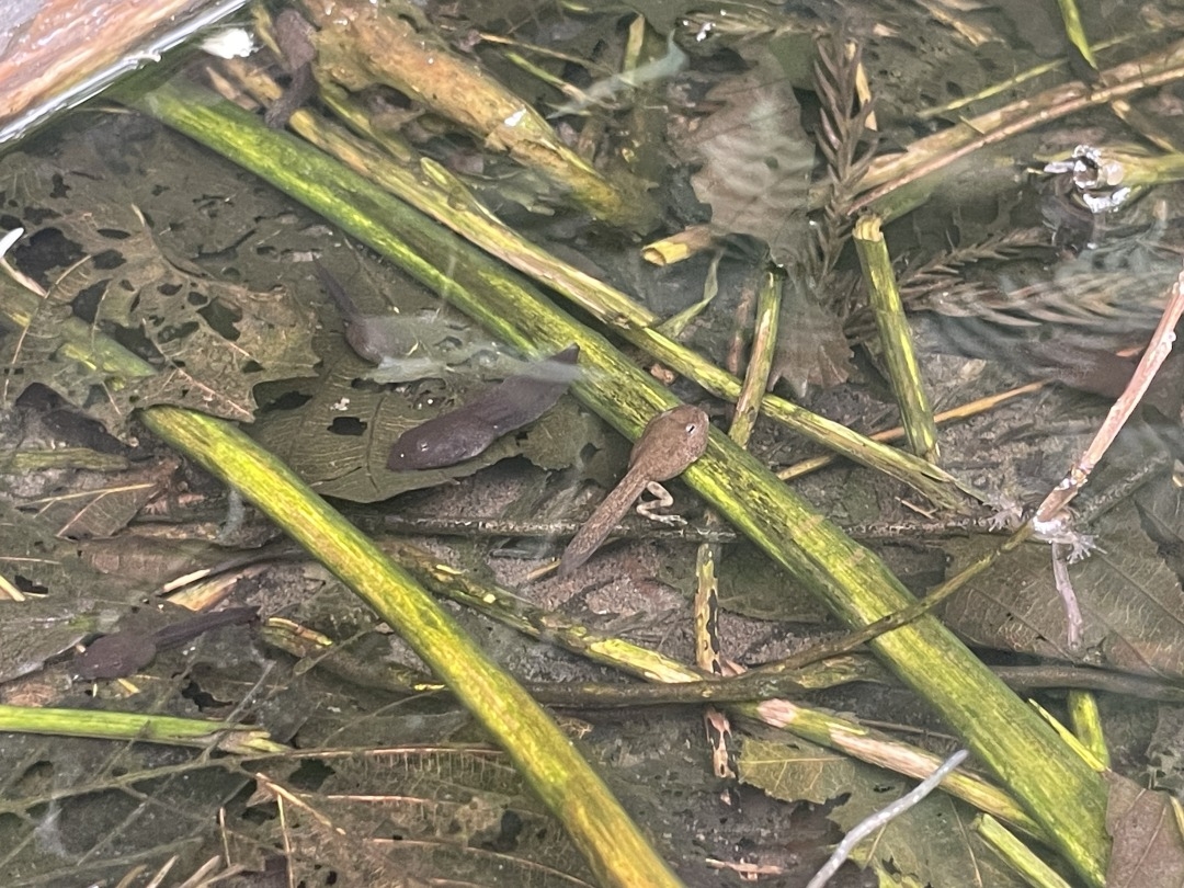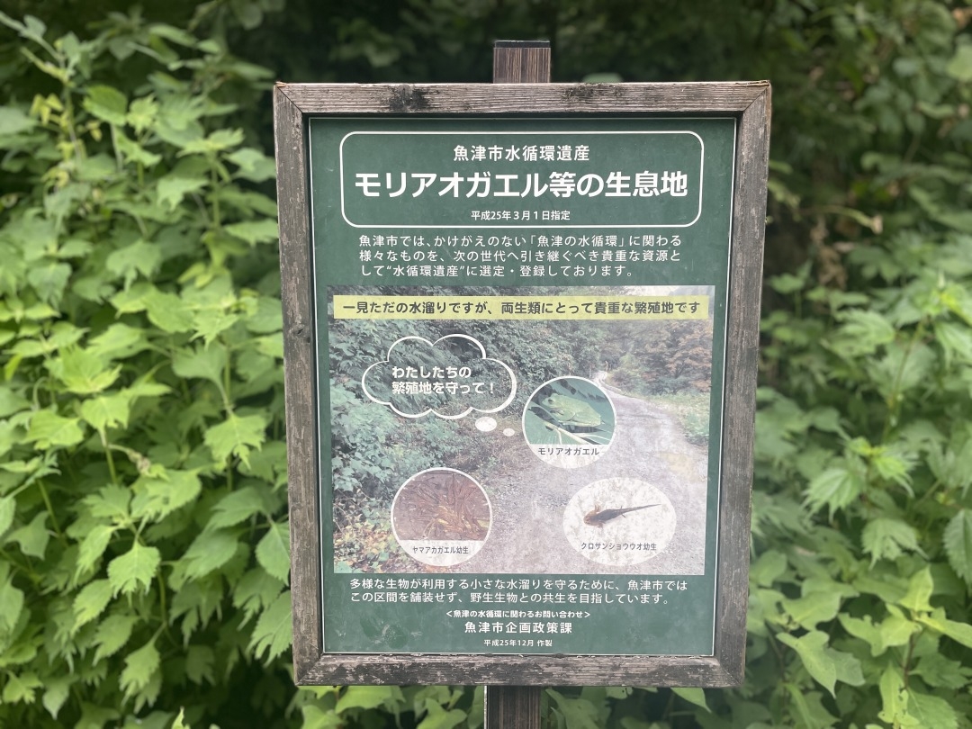道中にも、楽しいスポットが!モリアオガエル等の生息地です。小さな池に、カエル、おたまじゃくしがいました。モリアオガエルの卵と思われるものも、ありました。