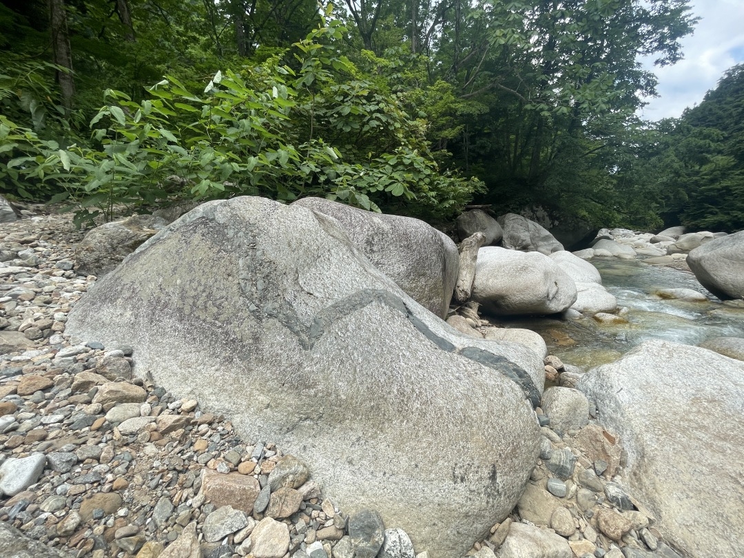 源流に近い蛇石は、さらに涼しく、風がさわやか。川の水もひんやりしていました。蛇石の前でしばし、避暑を楽しみました。