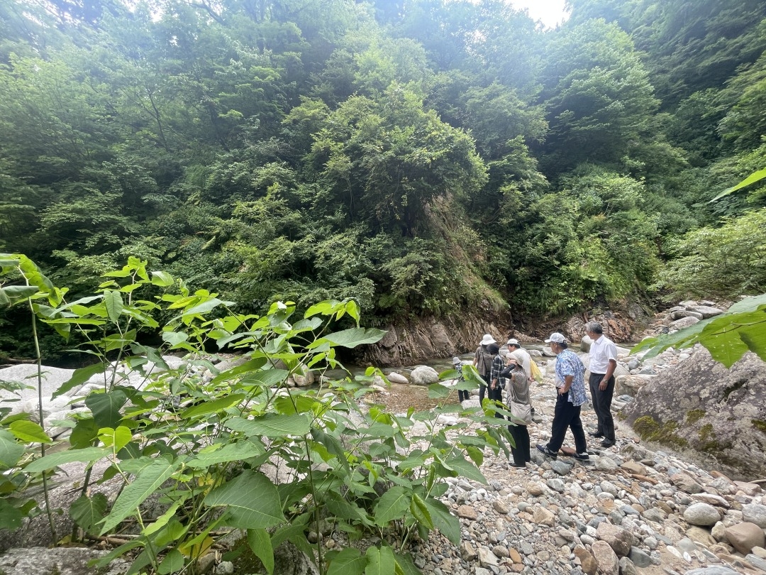 今回は、参加者のみなさんに「もっと山の中に行ってみましょう」と提案したところ「ぜひ!」という話になりました。そこで、源流のある「蛇石」というポイントまで10分ほど車を走らせることに。