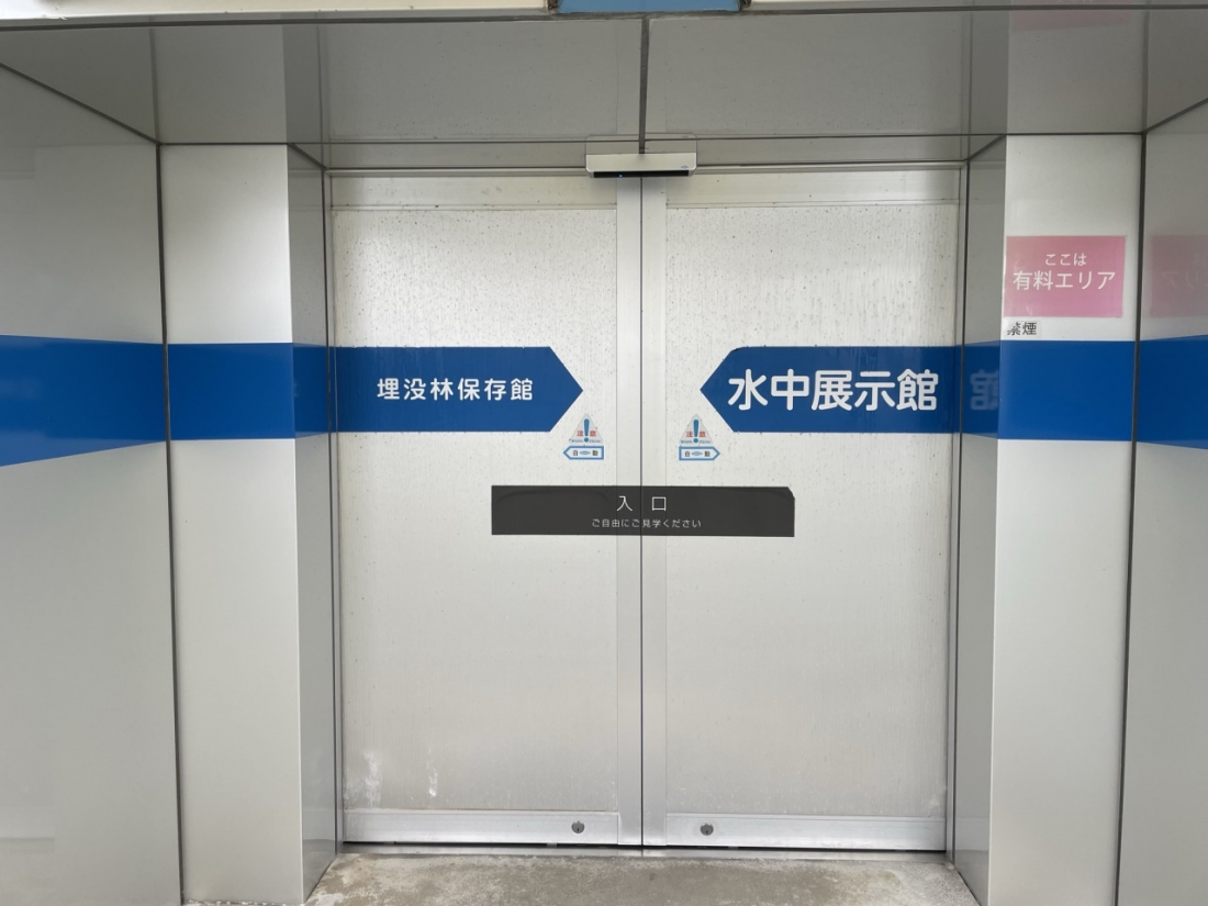 いよいよ噂の埋没林のもとへ。こちらは水中展示館です。上から見る埋没林はすごい迫力でした!2000年も前の木の根っこがこんなに綺麗に保存されている事にびっくりしました。なお、この根っこは、国の特別天然記念物に指定されているそうです。