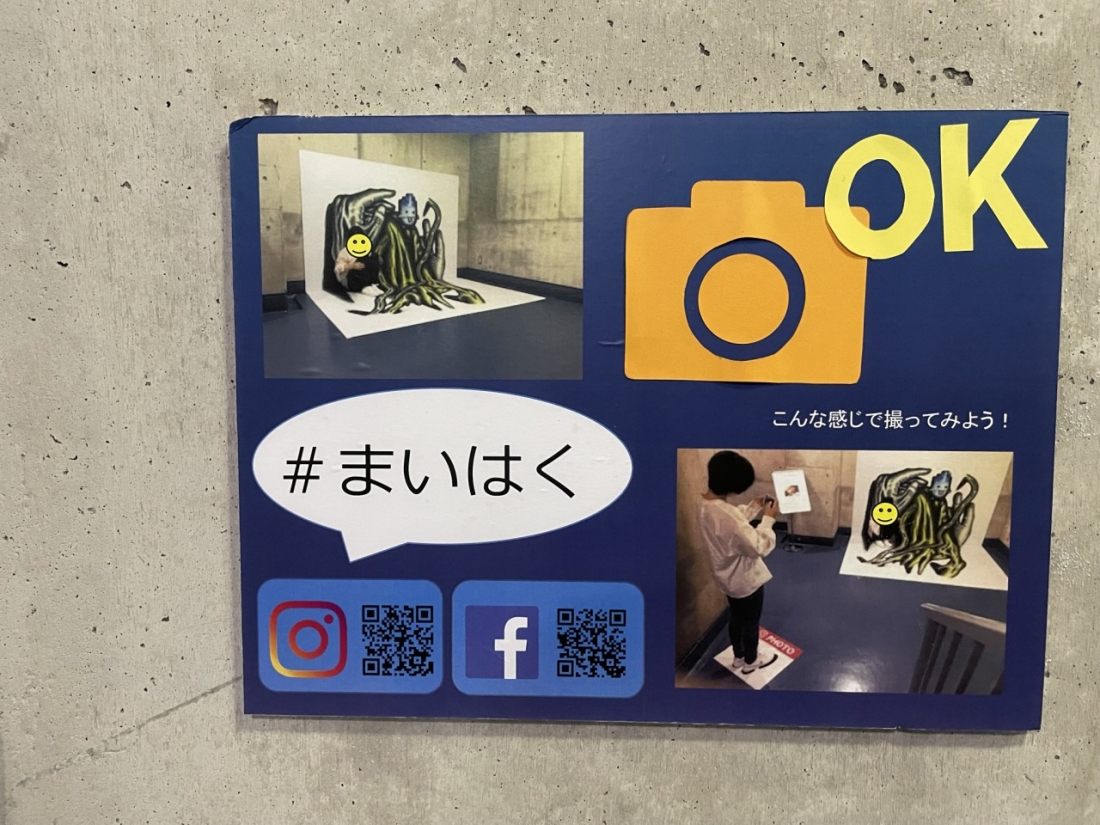 なお、館内には、あちこちに3Dアートが展示されていました。ここで写真を撮ると、立体感のある面白い写真に仕上がります。見つけたらぜひお試しを!