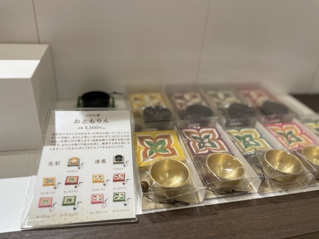 伝統工芸高岡銅器の町、高岡で明治40年に創業した「山口久乗(やまぐちきゅうじょう)」では、いろんな用途のおりんを企画・制作しています。「北前船」に置かれているのは、日常で使いやすい「インテリアおりん」の数々。店頭でも鳴らせるのですが、心を落ち着かせてくれる音色ばかりでした。一つひとつ音色が異なるので、いろいろ試して、お気に入りをお選びください。
