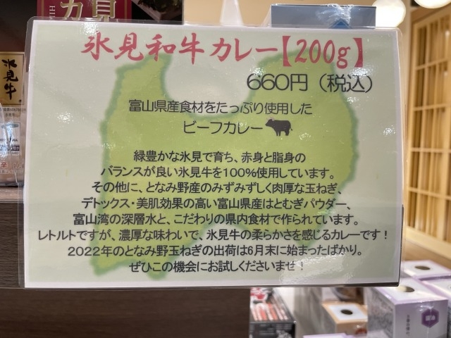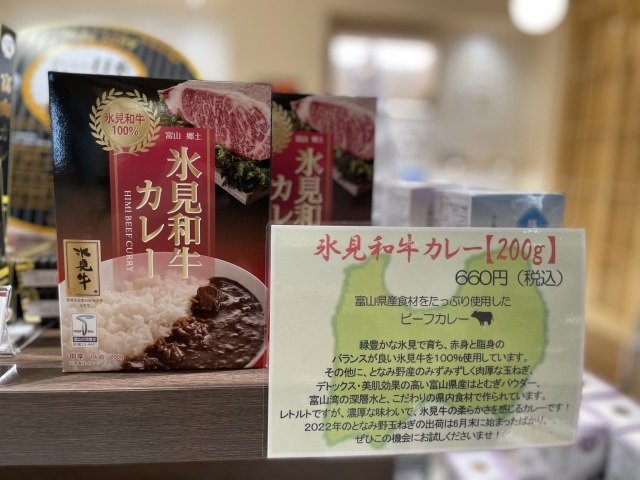 鹿本さんのおすすめは、富山県ならではのレトルトカレーをお土産にすること。数ある中でも推薦したいのは、この「氷見牛カレー」で「全て富山の食材を使って作られた」という点がポイントです。