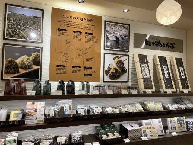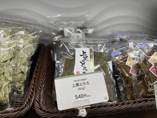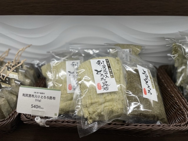 よい昆布を厳選して使っている、県内の昆布メーカー「四十物(あいもの)こんぶ」の昆布製品を並べたコーナーは、多くの人が立ち止まる一角。富山県民のお気に入りはやわらかめの羅臼昆布なので、羅臼昆布のラインナップが充実しています。