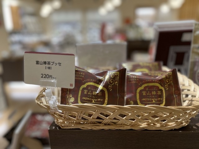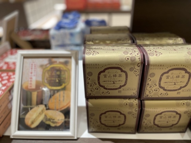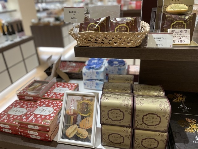 富山を代表するお茶屋さん「藤岡園」のお菓子も、手に取る人が多い人気商品。特に、加賀棒茶を入れたラングドシャやブッセなどの洋風のお菓子を選ぶ方が多い、とのことです。