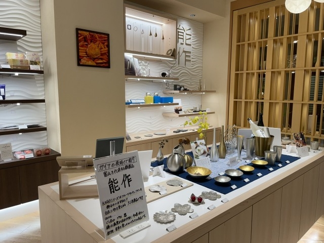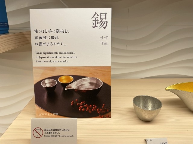高岡で400年にわたり育まれてきた鋳物の文化・伝統を受け継ぎながら、次々と新しい錫製品を作り続けている「能作」のコーナーには、魅力的なものがたくさん置かれています。