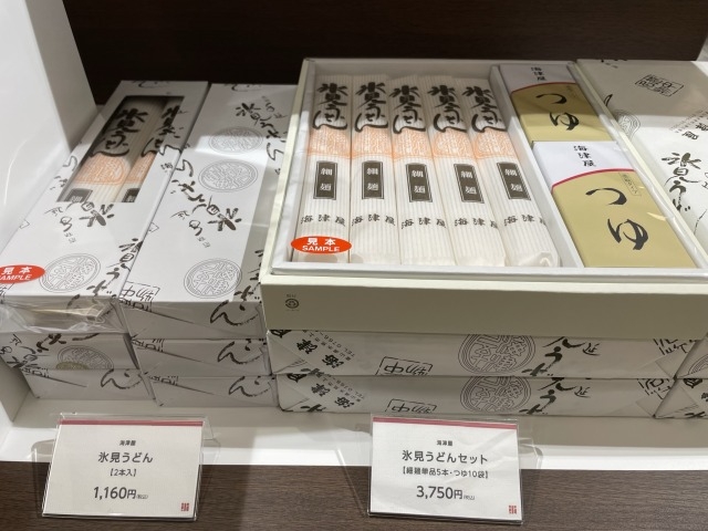 富山県民が大好きな、細麺で食べやすい「氷見うどん」は年間を通して人気。夏は冷やしうどんで、冬はあたたかいうどんとして食べられます。テレビ番組でも紹介されているので「県外の方もよく買って帰っている」(鹿本さん)とのことです。