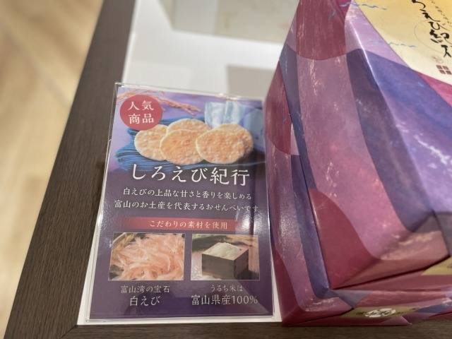 県内産のうるち米や白えびなど、富山の材料を使って作られている「しろえび紀行」は「常に売り上げ5位以内に入っている」とのことです。薄く焼き上げたサクサクの食感が特徴で、老若男女問わず食べていただけそうです。