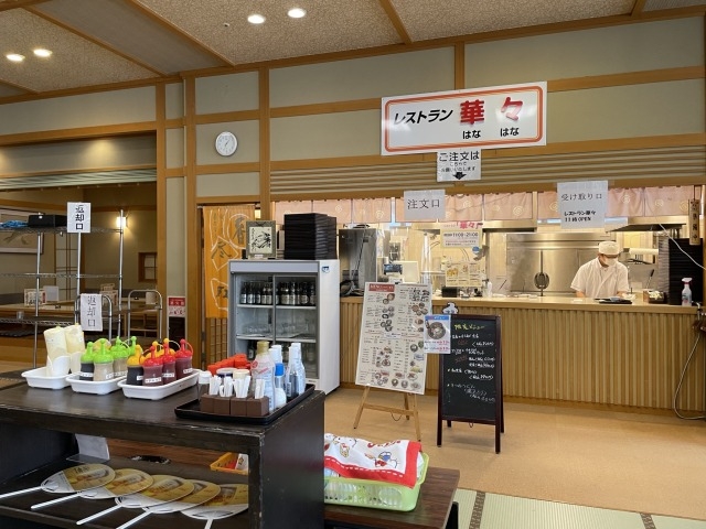お風呂から上がった後は、大浴場を出てすぐの場所にあるレストラン「華々」でランチを。館内は、ロッカーキーについたバーコードで決済できるので、スムーズに注文できます。