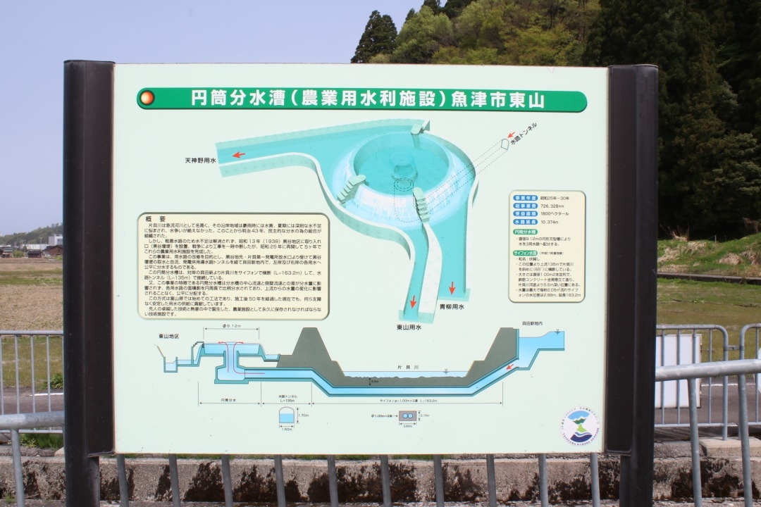 国の登録有形文化財になっている建造物「東山円筒分水槽」は、3つの用水に公平に水を分配するために作られた円筒分水槽です。円筒からあふれる水の落差がこれだけあるものは珍しい、とのことで、最近ではその独特の形と美しさが注目され、観光スポット、パワースポットとして訪れる人が多いです。