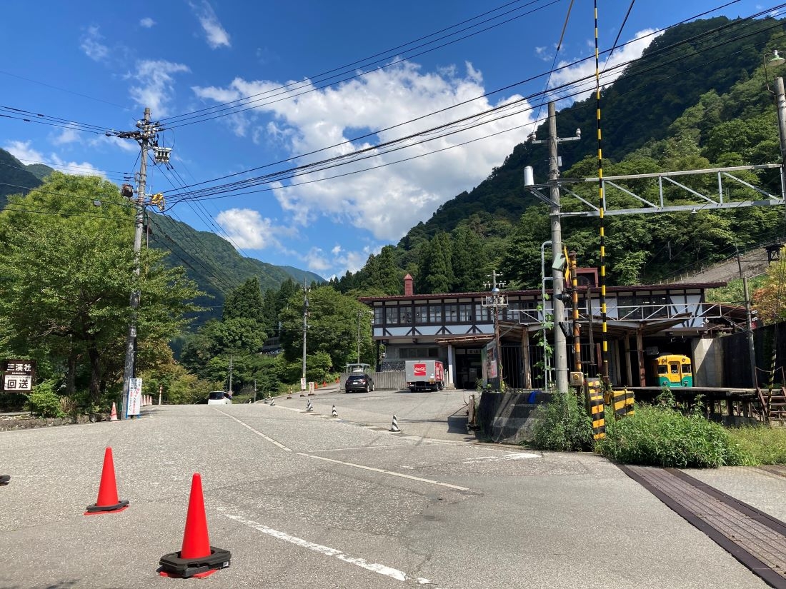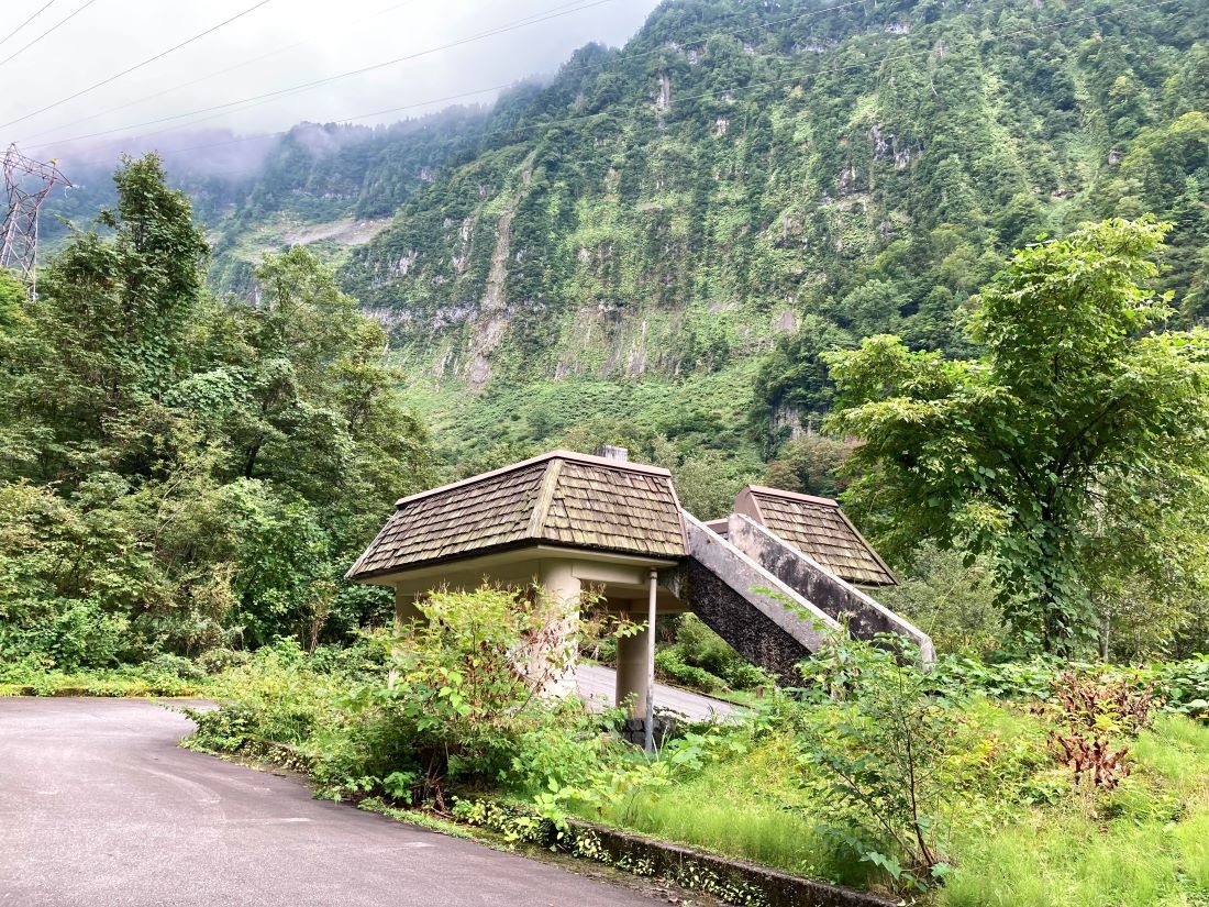 立山駅から「レストハウス称名」まで約8km、その中間地点ほどの場所には「ルート・カツラ」と「ドライブイン剱」というドライブインがあります。まずは、ドライブインを目指しサイクリングスタートです!