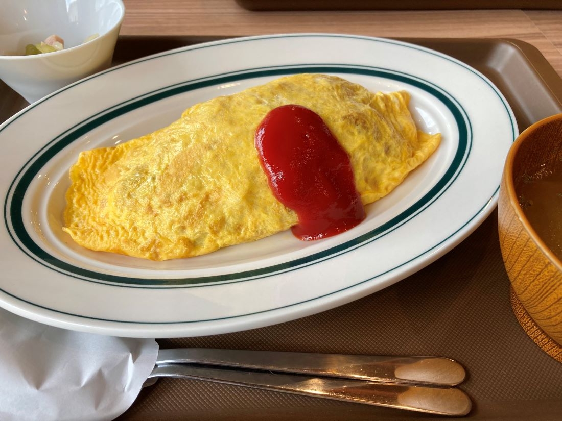 ランチには、小鉢、スープ、フリードリンクがセットになっています。私はオムライスを選んだのですが、固めの薄焼き卵もケチャップライスも本当においしかったです!一緒に行った同僚も、「おいしいおいしい」と最後の一口までカフェごはんを楽しんでいました。