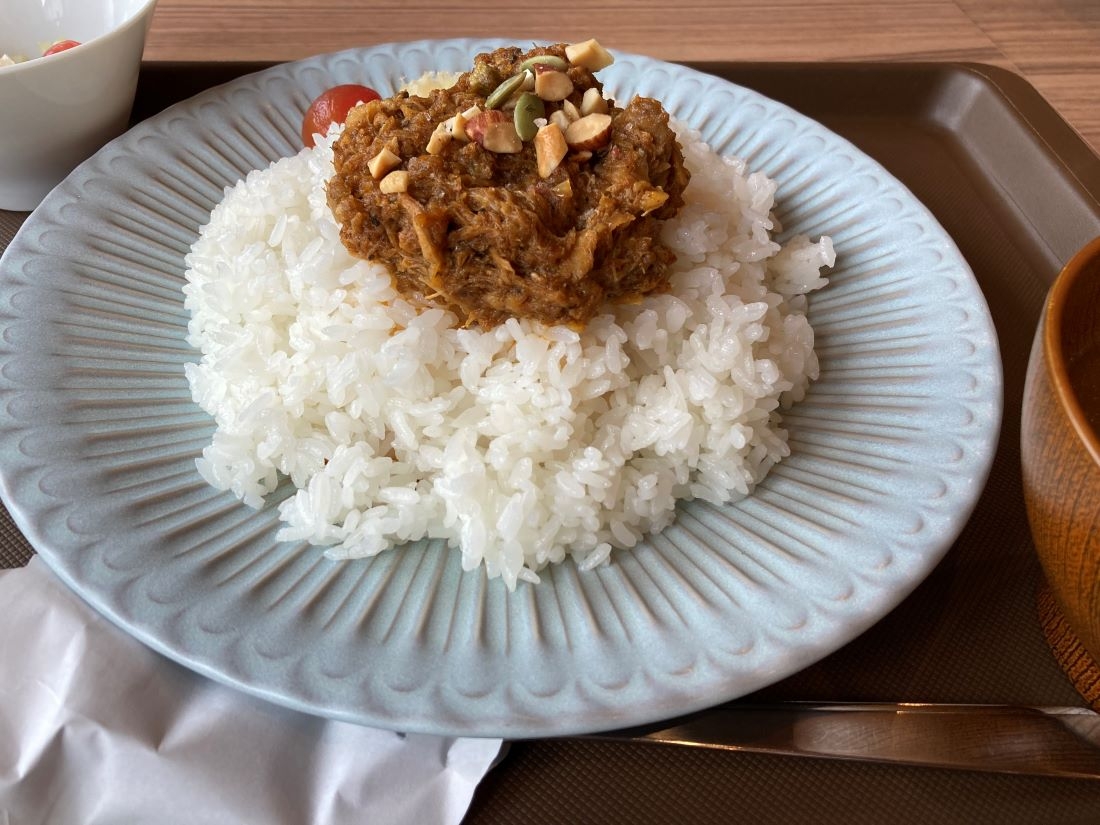 どれもおいしそうで迷いましたが、一緒に行った同僚とそれぞれスパイスカレー、オムライス、ハンバーグを注文しました。