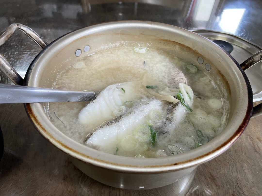鍋からすくって食べてみると、たらは臭みゼロで「たらってこんなに美味しかったっけ?」と驚きました。一緒に入っている長ネギ、ごぼうも良いアクセントになっていました。お味噌もちょうどよい塩辛さ。米は炊き方が絶妙で、もちもち食感で「たら汁」との相性抜群でした。