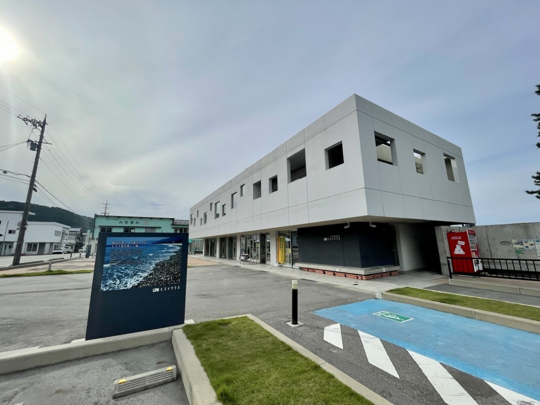 ・魚津駅からあいの風とやま鉄道に30分ほど乗り、あいの風とやま鉄道 越中宮崎駅へ。「ヒスイテラス」は越中宮崎駅の目の前にあります。「栄食堂」はそこから徒歩約17分です。