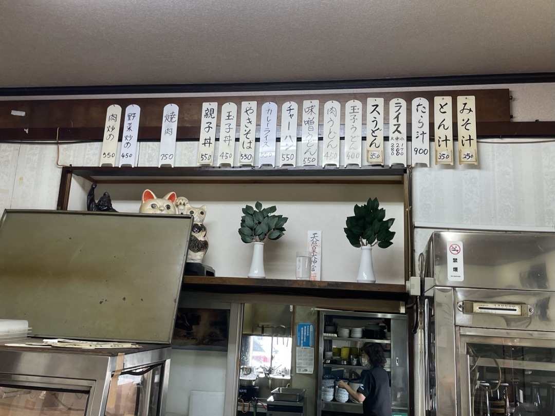 今回は、テレビなどでもたびたび紹介されてきた人気店「栄食堂」に行きました。店内は昔ながらの食堂の雰囲気で、くつろげました。芸能人の方の色紙もちらほら。冊子のメニューはなく、壁に貼られたメニューを見て選ぶスタイルです。
