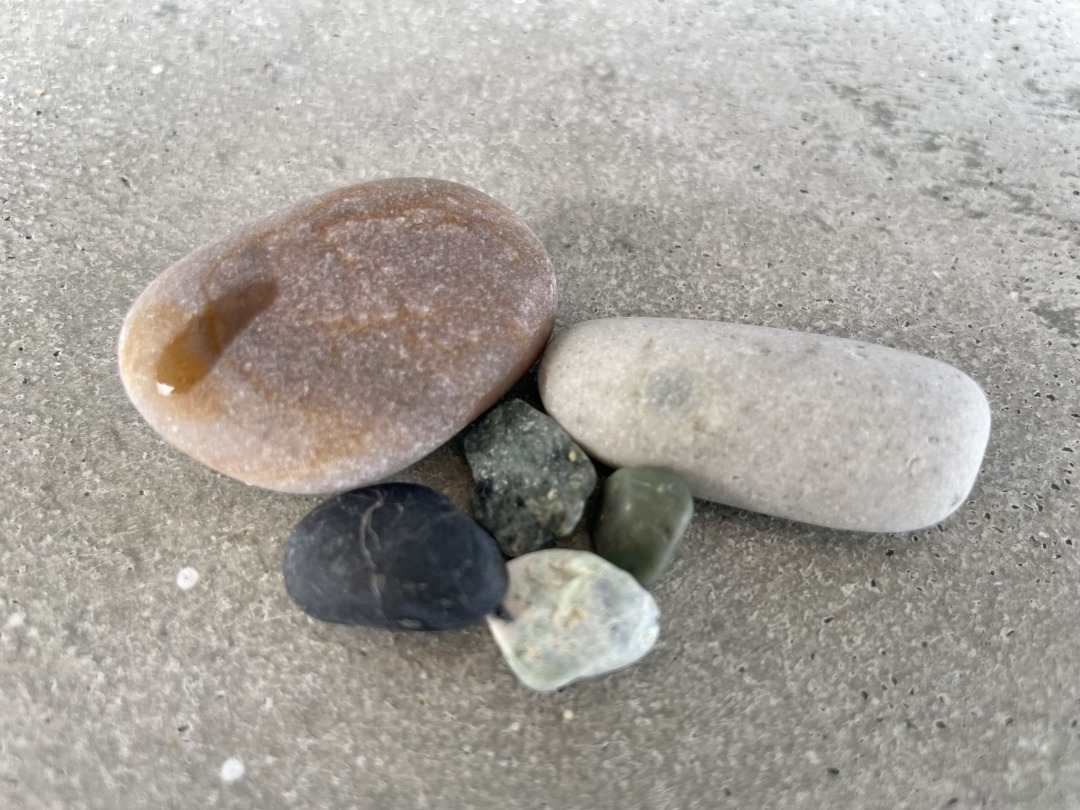 ヒスイテラスで休憩後は、真横の海岸でヒスイ探しに挑戦しました。以前、春休みに子どもたちと訪れた時(上記の写真)もそうだったのですが、いったん石を見始めると集中するあまり、時間を忘れてしまいました。