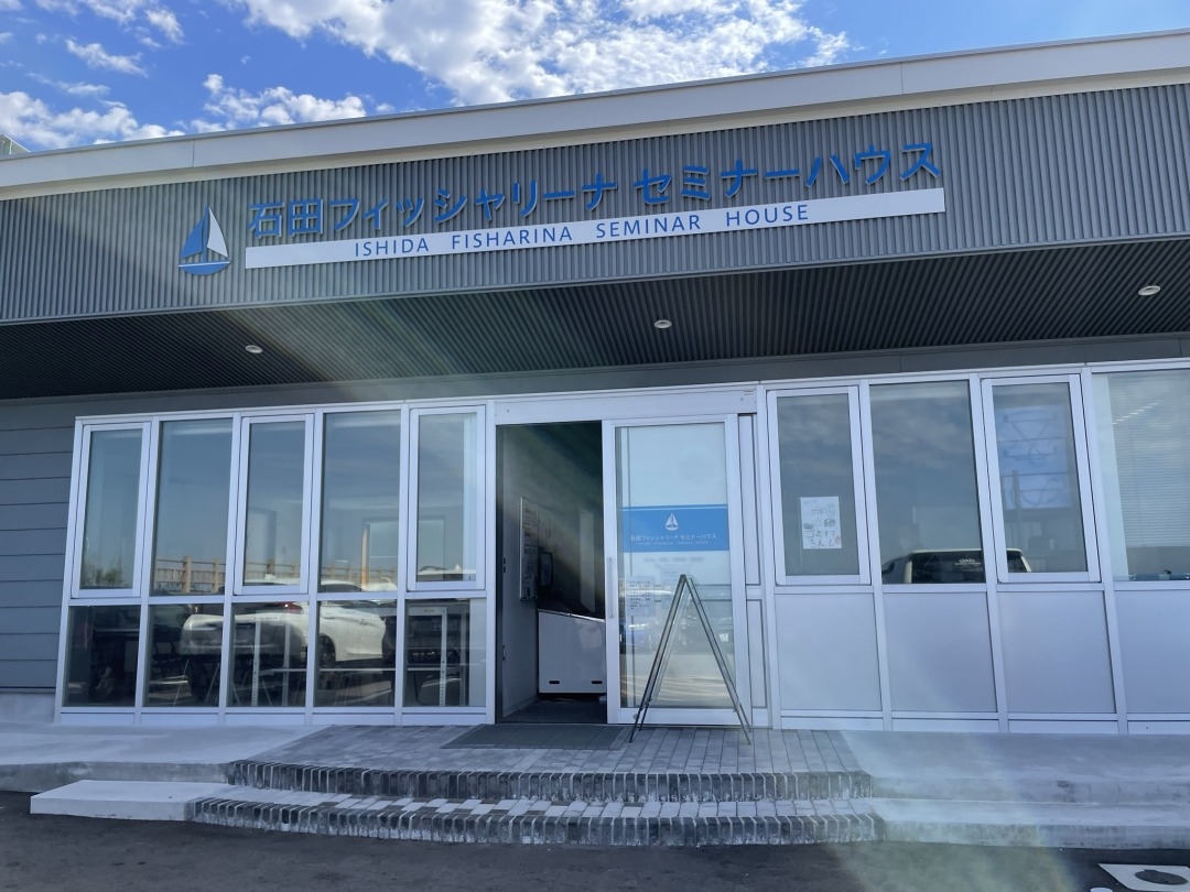 朝9時ごろ、石田フィッシャリーナに到着。駐車場を含め、すべて無料で利用できます。セミナーハウスに水道やトイレがあるので、便利です。