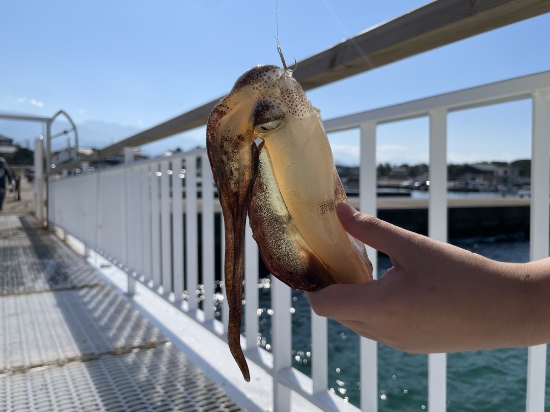 さらに、今回は小アジを餌にした投げ釣りにもチャレンジ! 幸運なことに、アオリイカが釣れました!!