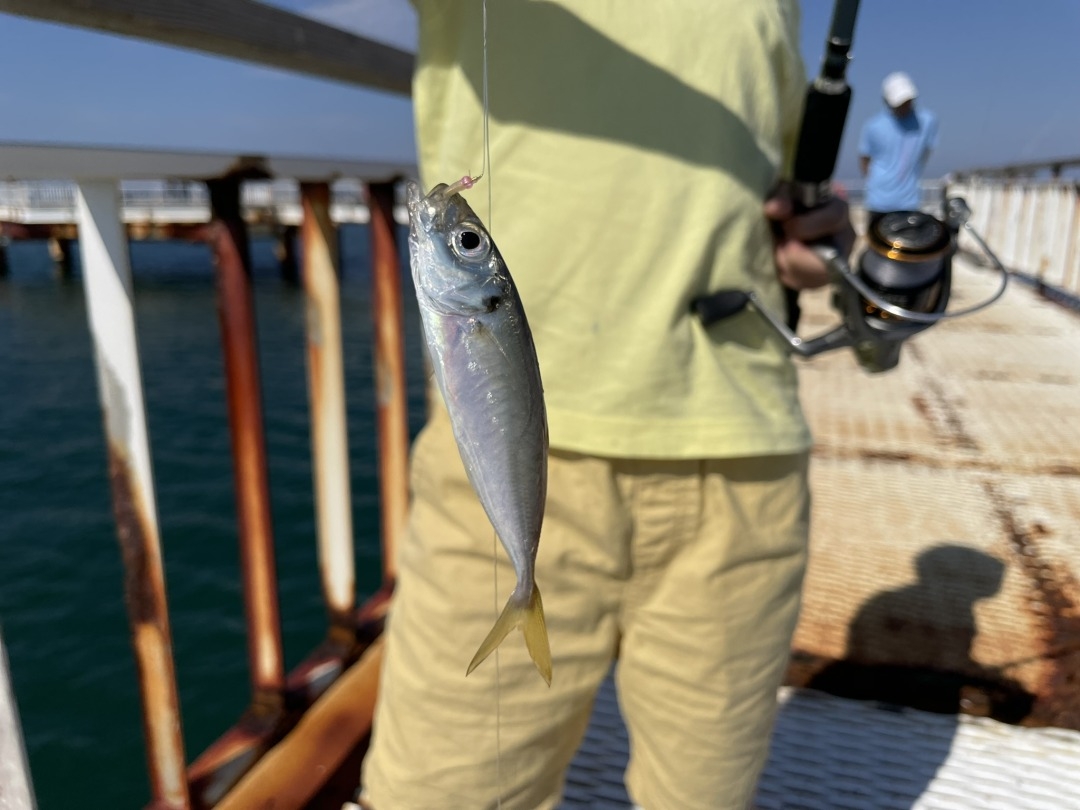 釣り桟橋に向かう途中、海の中に泳ぐ魚が見えました!期待が高まります……!!