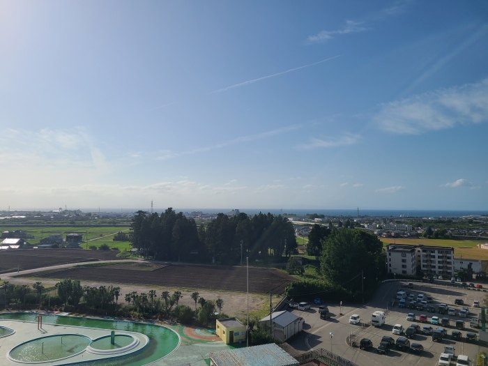 富山湾は、和室2ベットタイプ(647号室)から撮影しました。 こちらも、雲が掛かっていましたが、遠くに能登半島を望むことが出来ました。 本日は風が強く吹いています。お越しになる際はお気を付けてお越しください。