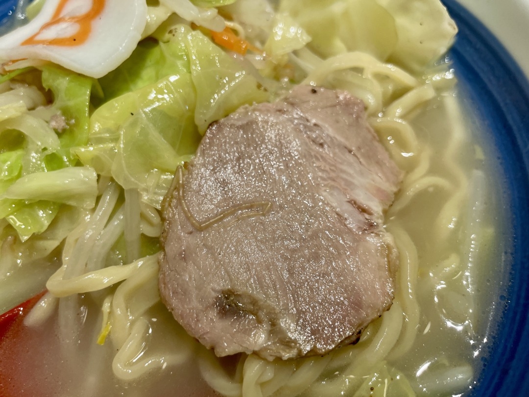 今回注文したのは、「野菜らーめん」です。スープの味は味噌、塩、醤油、バター風味から選べるのですが、今回は一番人気だと言われている「塩」にしました。