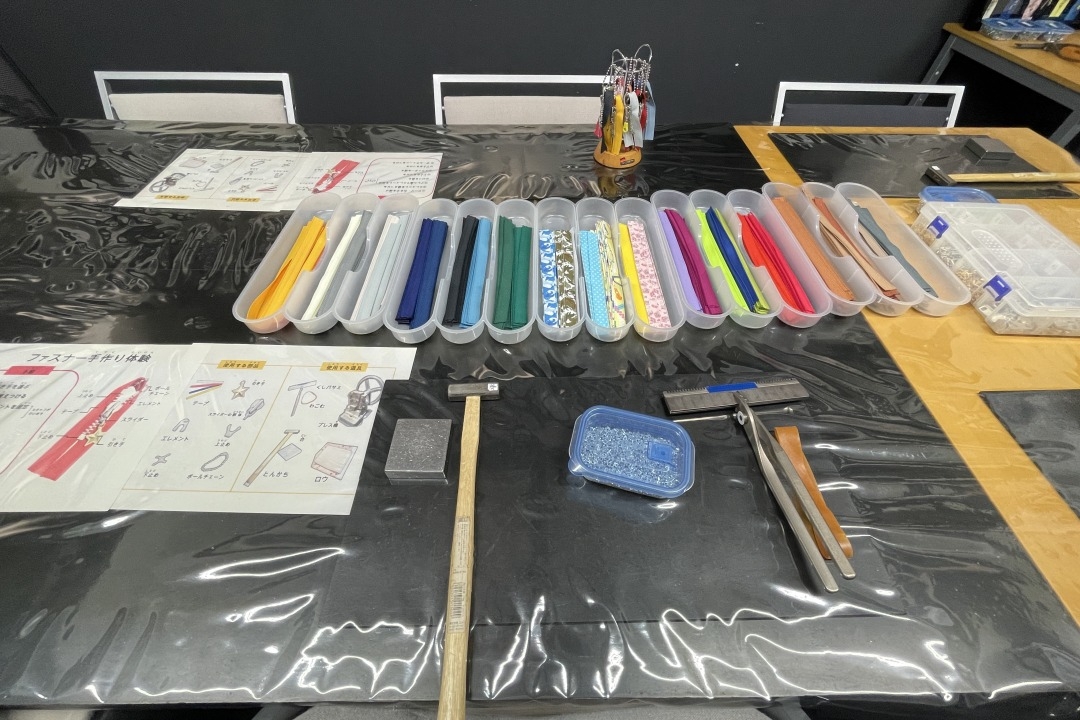 なお、ファスナー作りにかかった時間は最初の展示の案内が20分、その後の作る時間が40分ほどでした。小学生から1回800円(ドリンクチケット付き)で参加できます。