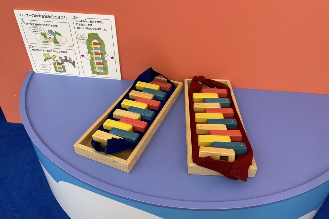 展示館1号館真ん中の「YKKタウンストリート」は、子どもが遊べるコーナーになっています。ファスナー積み木など、面白いおもちゃがありました!