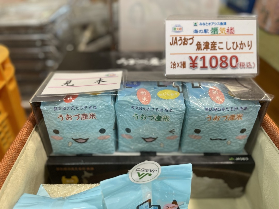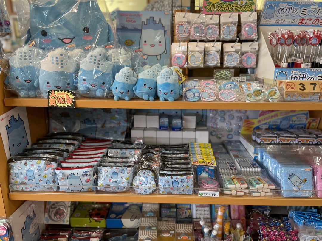 魚津産のお米、地元の和菓子屋さんが作っている名物「雪渓」、特産品のりんごを使ったジュース、ホタルイカの素干しなどの水産加工品から、魚津市イメージキャラクター「ミラたん」のオリジナルグッズまであり、見ていてウキウキしてきます。
