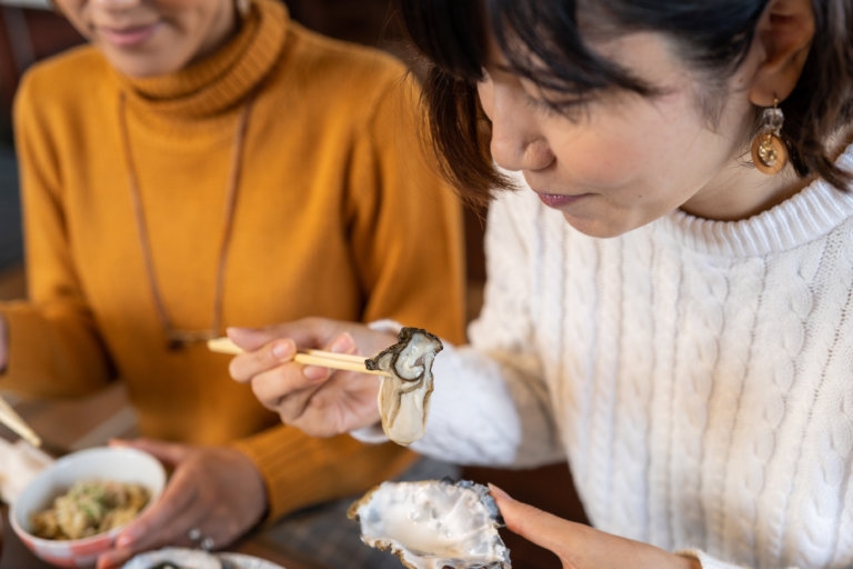 口に入れると、焼き牡蠣は凝縮されたジューシーな海の香りが!蒸し牡蠣は優しくミルキーなおいしさが広がります。