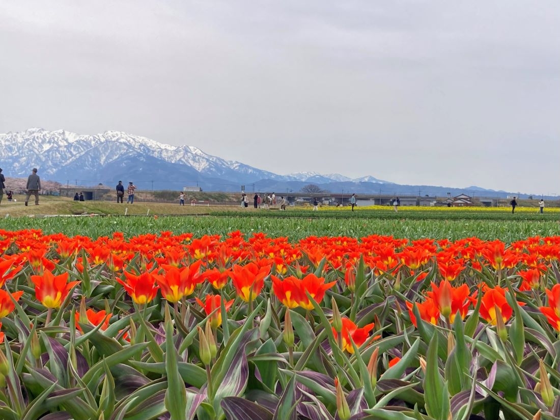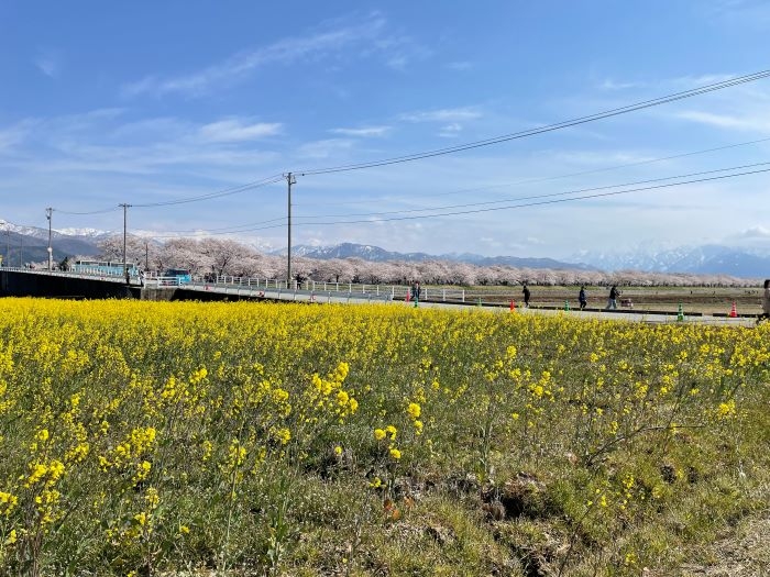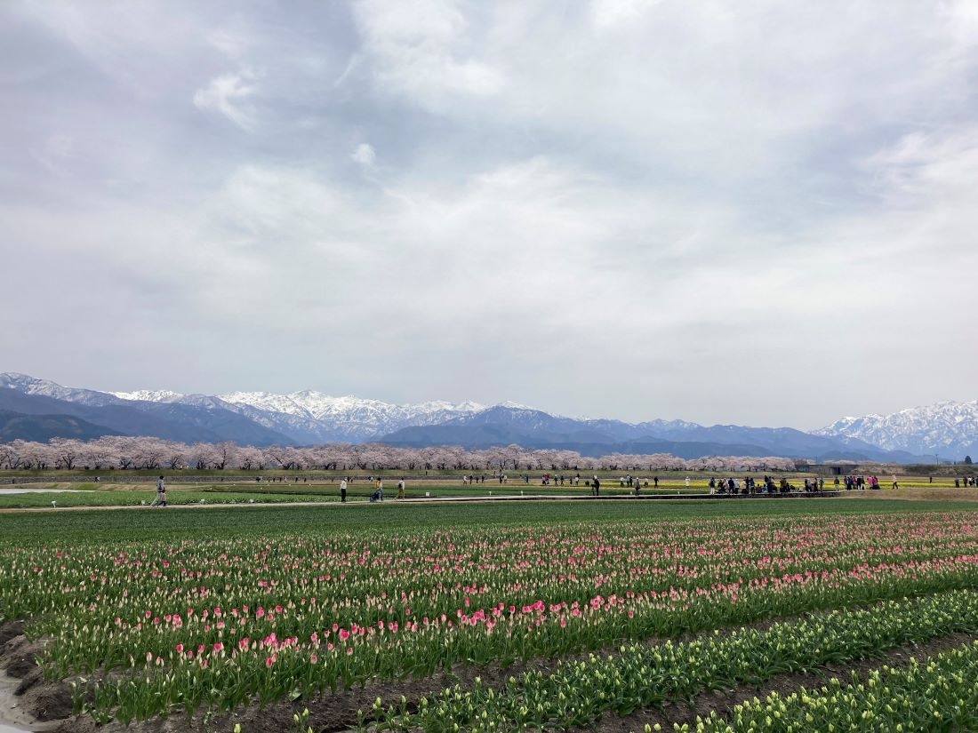 ソメイヨシノは地元の方々によって長年大切に維持管理され、チューリップと菜の花は朝日町の農家「チュリストやまざき」さんが毎年丁寧に育てています。地元の方々のおかげで、このような素敵な景色を楽しめることに感謝しなければならないと感じました。