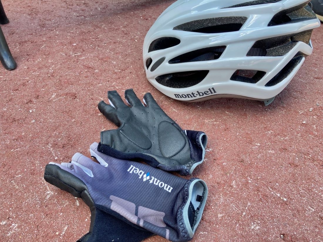 レンタルできる自転車は、モンベル社製の電動アシスト付マウンテンバイク。ヘルメットとグローブも貸し出していただけました。本格的な自転車と装備に、ワクワクが高まります!