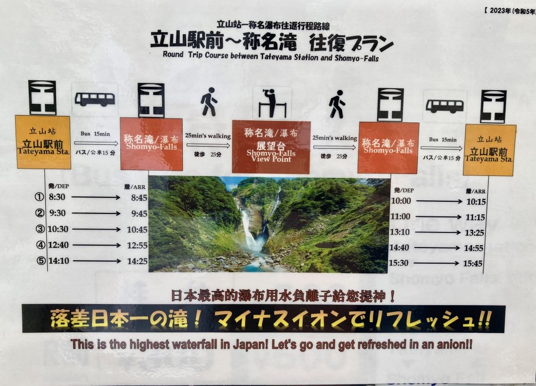 称名滝からの帰りのバスも、ちょうど観光を終えるくらいの時間で設定されているので安心です。
