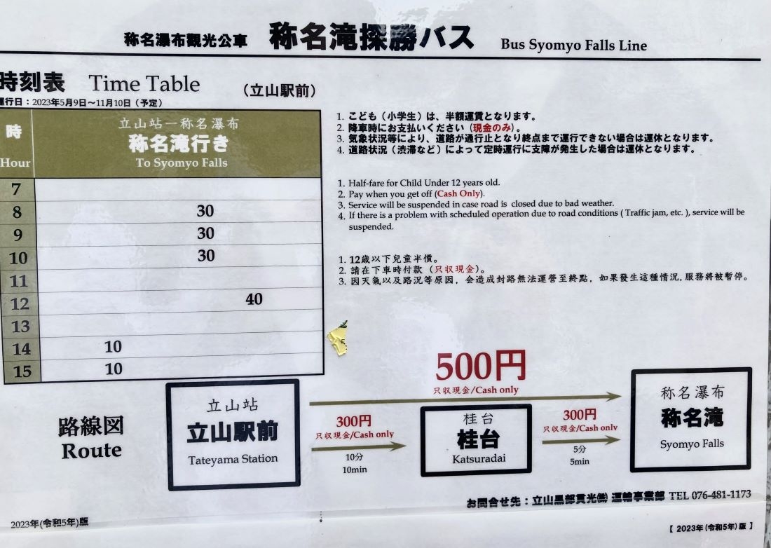 月によって異なるので、詳しくは立山町観光協会HPをご確認の上ご利用ください。